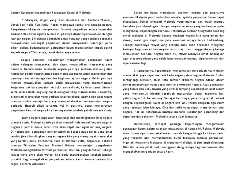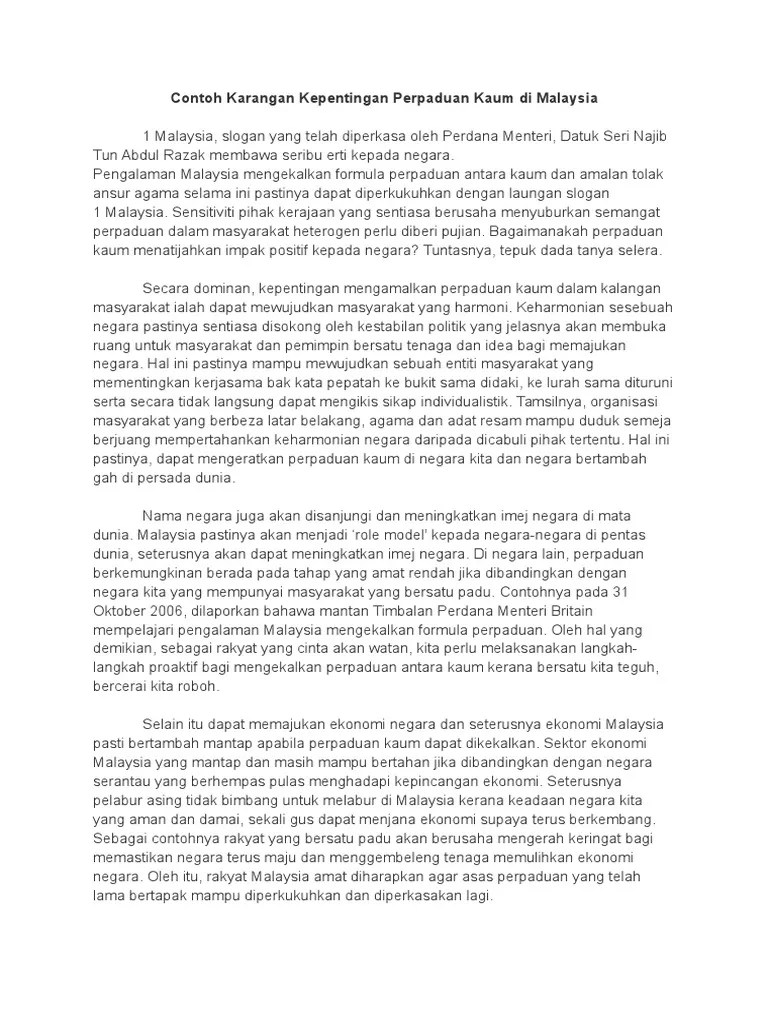 Karangan Perpaduan Kaum Di Malaysia Contoh Pt3 Spm Stpm